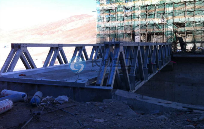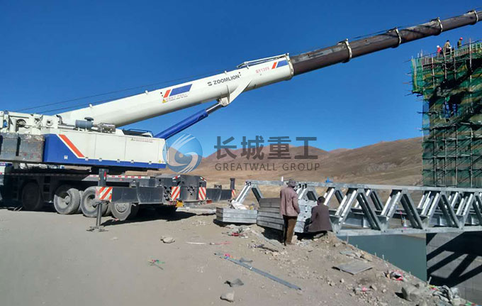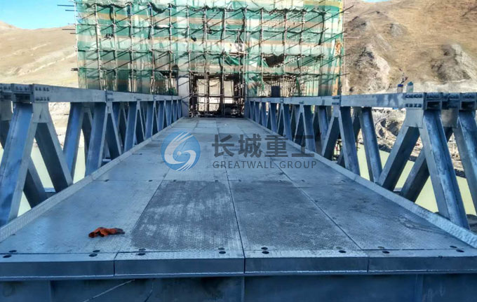 由于贝雷桥在跨度上有其局限性,极限单跨一般不超过60米,镇江长城重工生产的GW D型装配式大跨径钢便桥,单跨可达90米,弥补了贝雷桥的不足。