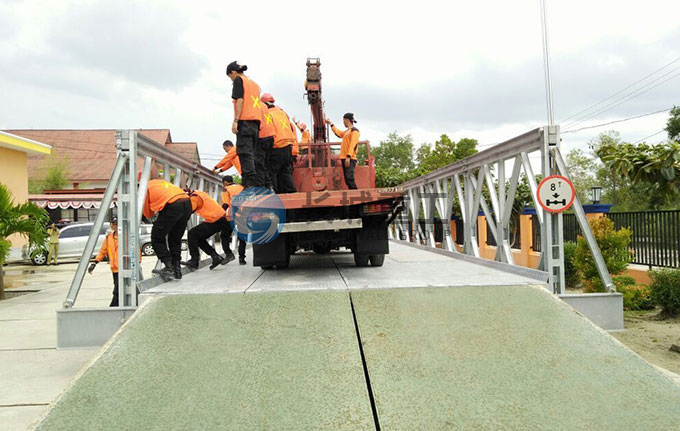 由于贝雷桥在跨度上有其局限性极限单跨一般不超过60米,镇江长城重工生产的GW D型装配式大跨径钢便桥,单跨可达90米,弥补了贝雷桥的不足。