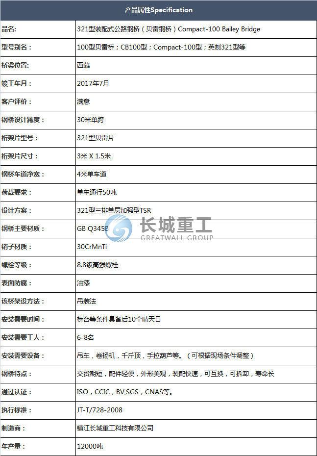 西藏30米321型三排单层加强单车道装配式桥