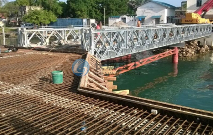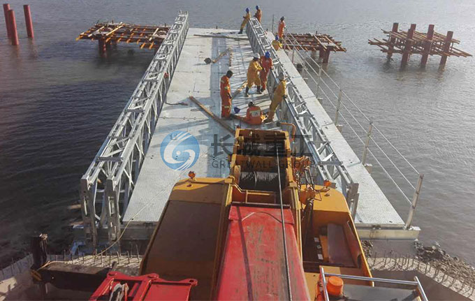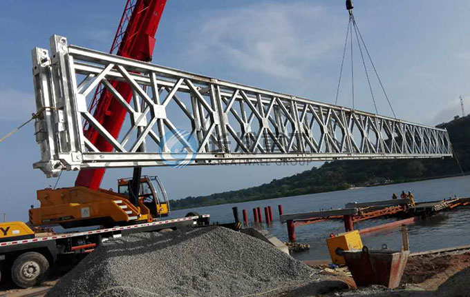由于贝雷桥在跨度上有其局限性,极限单跨一般不超过60米,镇江长城重工生产的GW D型装配式大跨径钢便桥,单跨可达90米,弥补了贝雷桥的不足。
