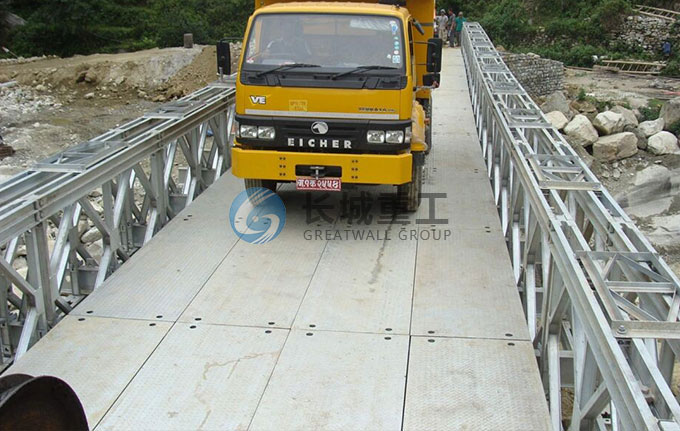 由于贝雷桥在跨度上有其局限性,极限单跨一般不超过60米,镇江长城重工生产的GW D型装配式大跨径钢便桥,单跨可达90米,弥补了贝雷桥的不足。