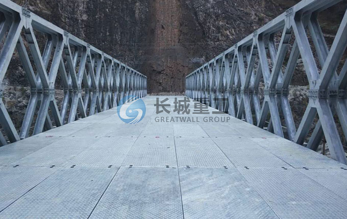 由于贝雷桥在跨度上有其局限性,极限单跨一般不超过60米,镇江长城重工生产的了GW D型装配式大跨径钢便桥,单跨可达90米,弥补了贝雷桥的不足。