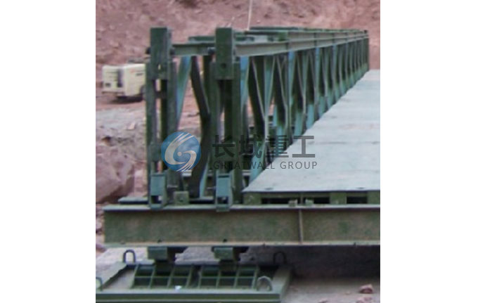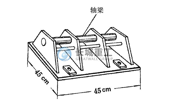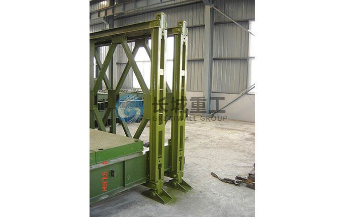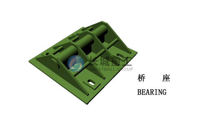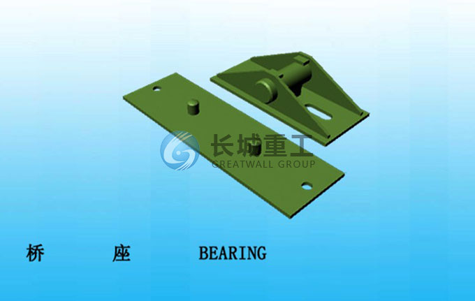 321型桥座:桥梁端柱支承在桥座轴梁上,轴梁分为3段,架设单排桥梁时,桁架端柱支承在轴梁的中段上;架设双排桥梁时,用两个桥座,端柱分别支承于两个桥座轴梁中段上,架设三排桥梁时,仍用两个桥座,内排端柱支承于1个桥座轴梁中段,中、外排端柱分别支承于另一桥座轴梁的两边段上。