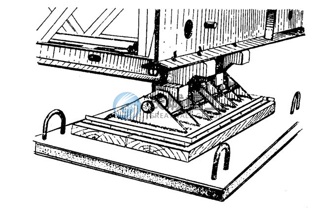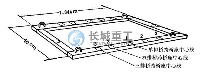 321型座板:座板用于放置桥座,并将桥座传来的荷载均布于地基上。在座板边上刻有1、2、3数字,分别表示单排、双排、三排桥梁桥座中心线位置。在座板另一边上刻有跨桥方向的中心线位置。