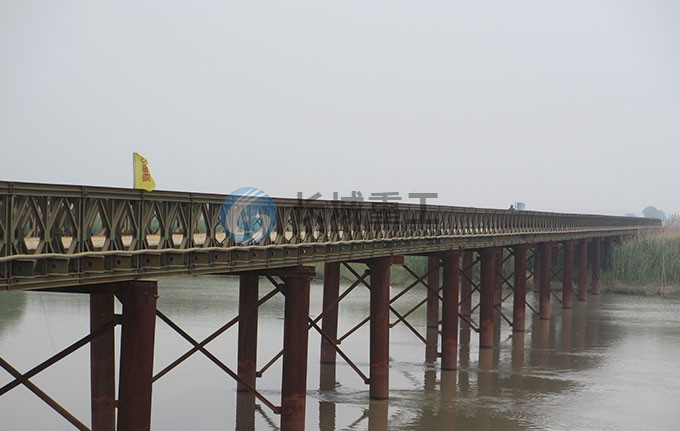 1、构造:贝雷钢桥连续梁桥跨全桥主梁各桁架均用销连接,桁架的组合形式随跨度,载重量的不同而不同。